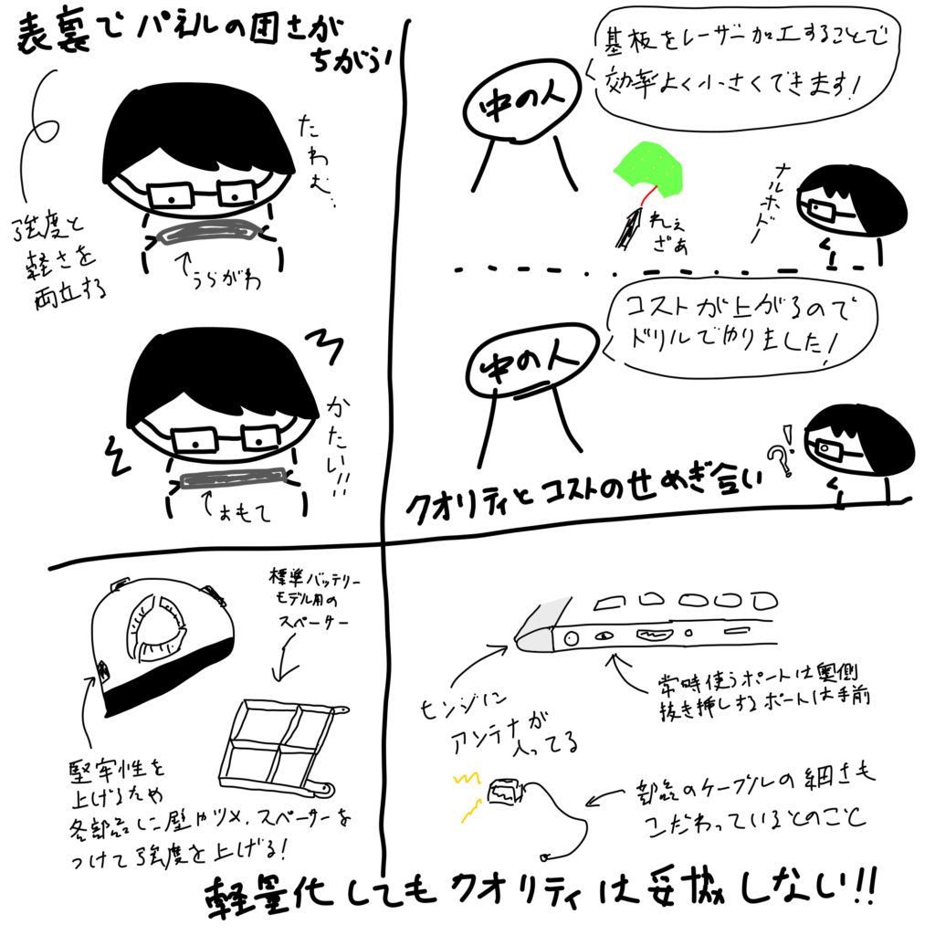 クオリティとコストを両立した設計の大変さや小さなボディに以下に部品を詰め込むかなど貴重なお話が聞けてよかったです。